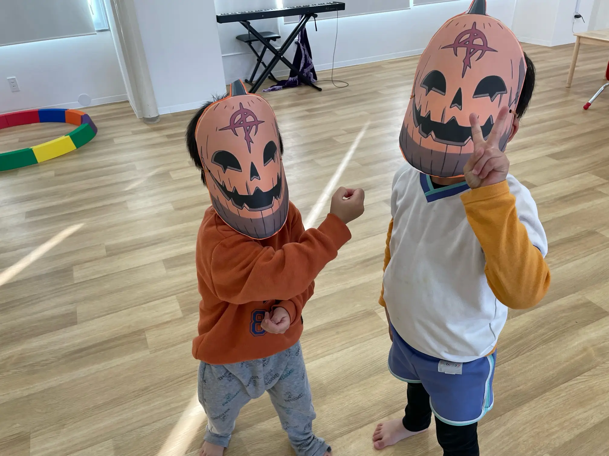 お面の絵の部分をハサミを使って上手に切る事が出来ました✂️✨